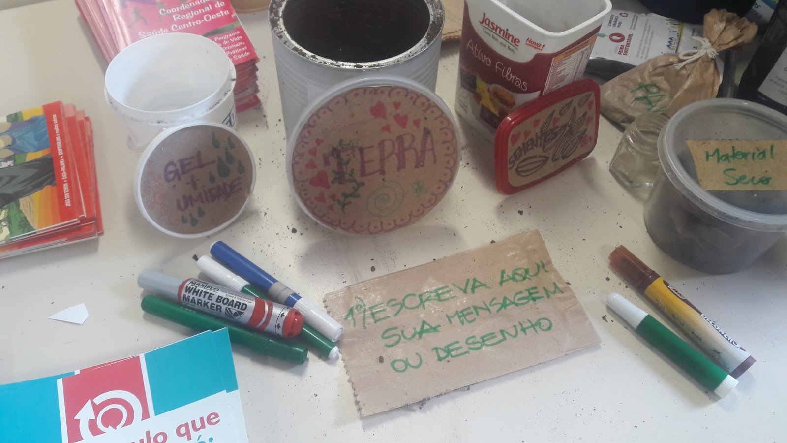 Levamos também um kit de reciclagem a partir de embalagens longa vida e uma mini-composteira.