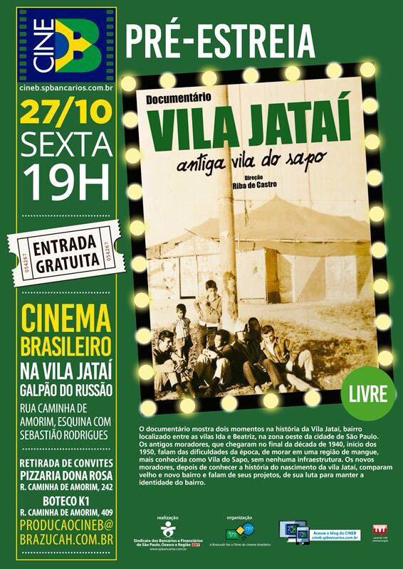 Próximo dia 27/10/2017 ( sexta feira as 19h ) haverá a pré–estreia do documentário VILA JATAI que conta um pouco da historia do bairro do nosso amigo e cineasta Riba de Castro