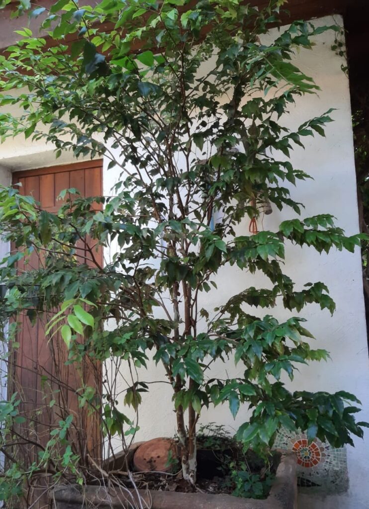 “Minha jabuticabeirinha, nascida de uma semente da Sabará mais gostosa do bairro. Sua mãe está lá na Diógenes, ao lado da Casa de Repouso onde estava meu pai, que também gostava muito das jabuticabeiras. Fui visitá-lo, em plena pandemia, e vi a árvore linda, cheia de frutos. Você, peguei no chão e plantei. Agora acompanho seu crescimento, em um vaso, pobrezinha, mas fiz assim para poder te levar comigo para onde eu for. As jabuticabeiras são as árvores da minha infância, das férias na chácara dos avós, de subir e comer até não poder mais. Dizem que quem planta jabuticabeiras tem esperança no futuro. Eu renovo as minhas esperanças cada vez que te vejo.”
