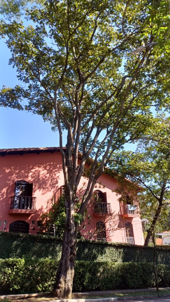 “Ter te descoberto aqui no bairro foi algo tão maravilhoso, que às vezes passo por você e custo a acreditar que é você mesmo, uma espécie tão imponente, magnífica e solitária nessas bandas. Te imagino desejando outros araribás adultos por perto, carregados de flores, frutos e recebendo a visita de centenas de pássaros e insetos. Mas como uma andorinha só não faz primavera, os cantos dos papagaios e araras ficam só na imaginação. Toda vez que passo pela sua sombra e vejo suas lindas sementes caídas sobre o asfalto te agradeço por seguir tentando germinar, espalhando possibilidades para essa região voltar a ser mais biodiversa e conectada à terra. Obrigado por seguir resistindo araribá, árvore das araras.”