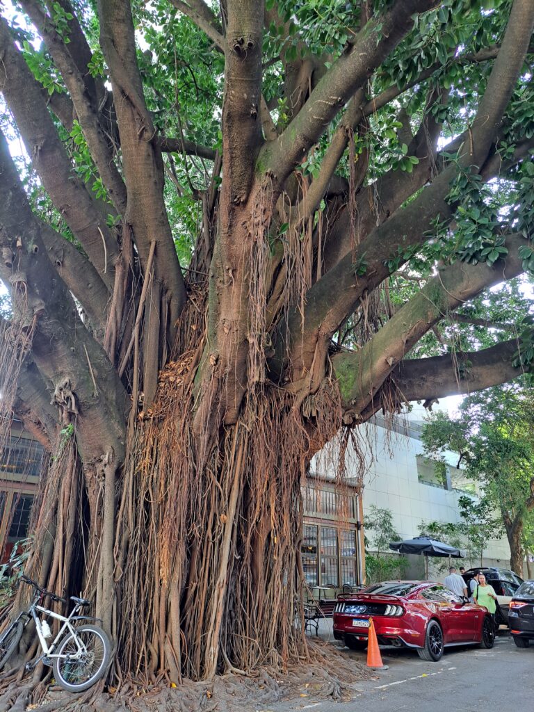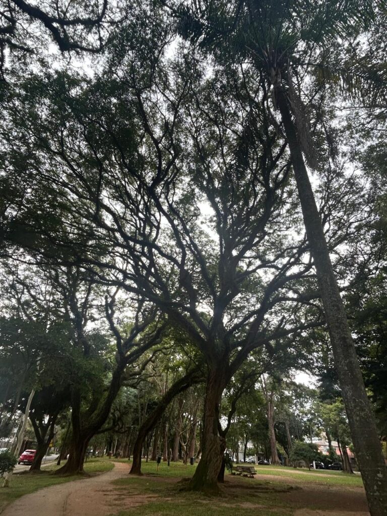 “Para minha querida Universus numerosis. Eu te conheço há mais de 50 anos. Quando te vi pela primeira vez, no colo do meu avô, já te chamava assim: A Grandona. Dizem que é centenária, eu acho que você é duzentenária. Mesmo meu avô me erguendo nos braços, você já era grande. Eu nunca consegui te alcançar e é por isso que te escrevo. Ao contrário de mim, você me alcança sempre que passo por perto. Não sei seu nome de família. Dizem que é figueira-de-bengala ou Ficus benghalensis. Nome pomposo que eu trocaria por Universus numerosis. Sabe por quê? É que dá para ficar horas vendo seus troncos, o entra e sai de cada curva, a formiga a aranha o besouro o sabiá a folha amarela verde brilhante na chuva no sol no céu da noite. Você é tão enorme que cabe todos os universos que a gente imagina. Tenho certeza que tem gnomos aí dentro, você é bisavó do Groot, que tal uma rede lá no topo, um mirante, um comedouro, uma horta para quem voa? Quanta coisa você abraça? Hoje quando fui te fotografar, tinha uma bicicleta descansando no seu pé. Ela fazia cosquinhas? Uma volta ao seu redor é um carrossel para gente retomar o fôlego. Diminuir o passo quando estiver debaixo da sua copa e lembrar que quando vocè for trezentenária, alguém vai carregar uma criança no colo, apontar para cima e dizer: “Olha que árvore Grandona! Sabia que ela guarda universos?”