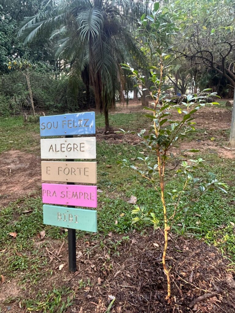 Que venham as chuvas, os ventos, os guardiões para te cuidar e te celebrar com suas raízes, folhas, flores e frutos ao lado das sabias inscrições “Sou Feliz, Alegre e Forte, Para sempre, BIBI “